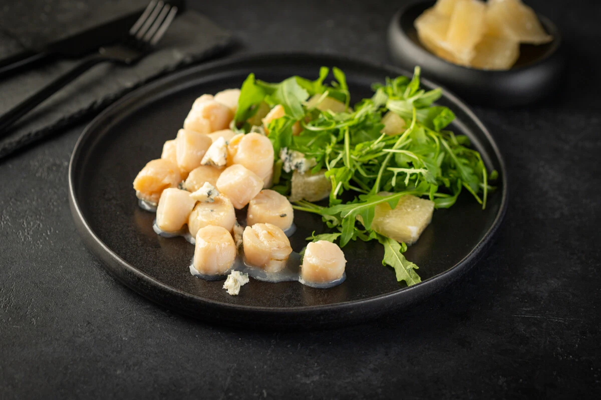 Гребешки с помело и голубым сыром