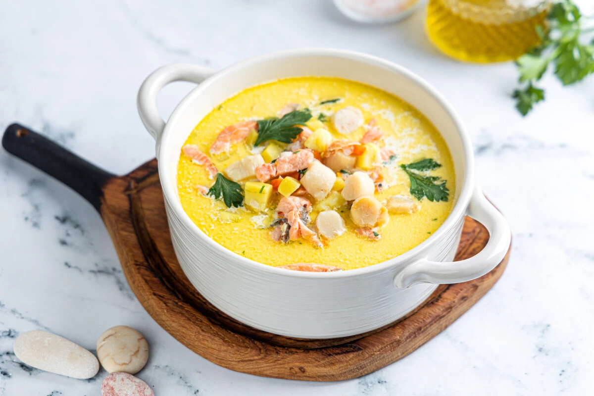 Скандинавский суп с гребешками