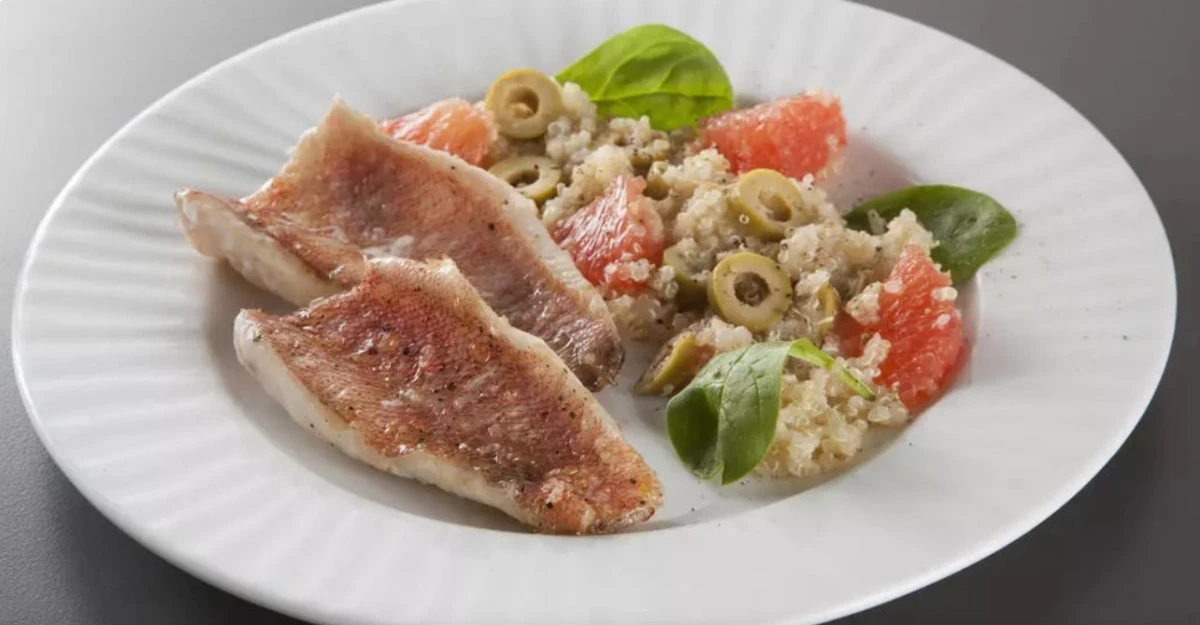 На наш взгляд, весьма удачное сочетание — киноа с морским окунем и грейпфрутом: за 20 минут вы получите необычное, лёгкое, но питательное блюдо.