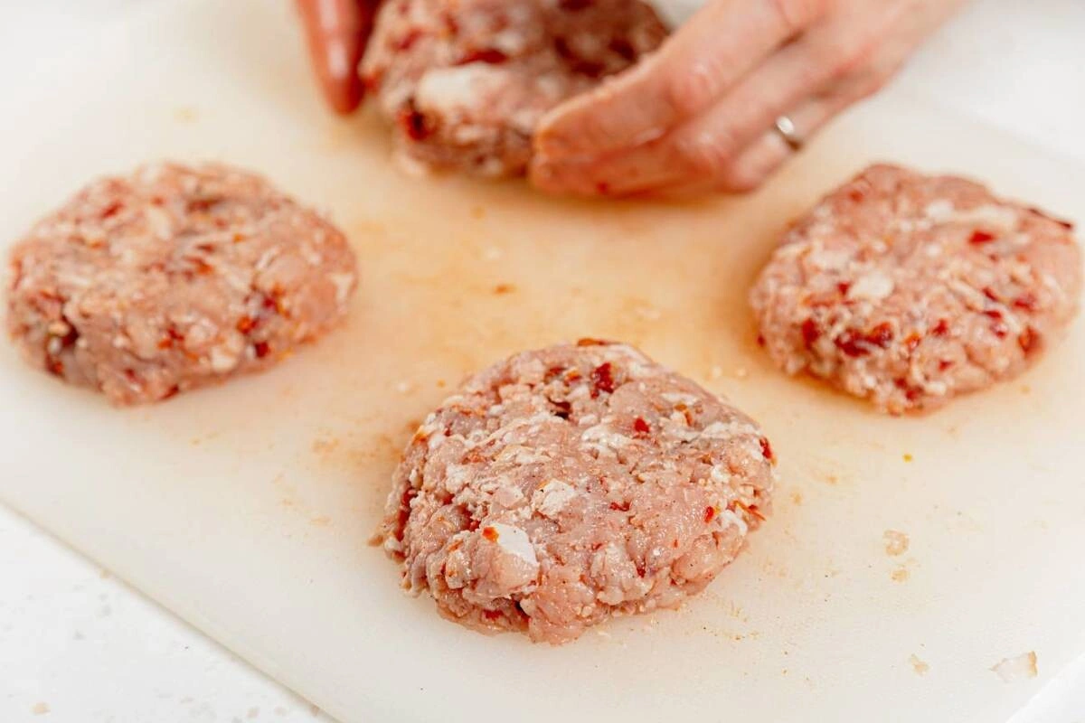 - Из этого количества фарша у вас получится 4 котлеты для бургера. Спрессуйте их и пожарьте на гриле над углями или на сковороде-гриль, а затем сразу соберите бургер. Если вы будете готовить бургеры позже, котлеты можно заморозить в сыром виде.