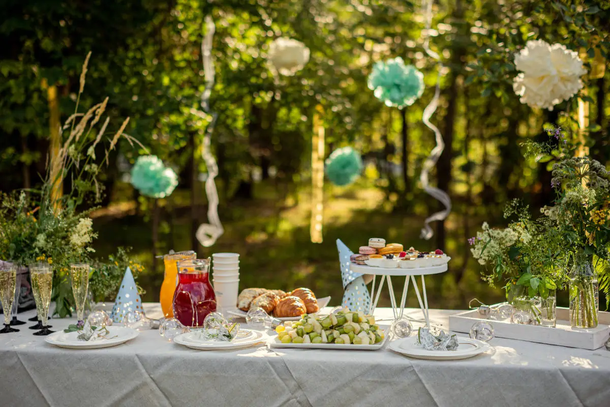Если на пикнике будут дети, стол для них можно организовать отдельно, с тематической посудой и декором. Также придётся позаботиться о досуге и развлечениях. Если планируется много детей, лучше привлечь аниматора.