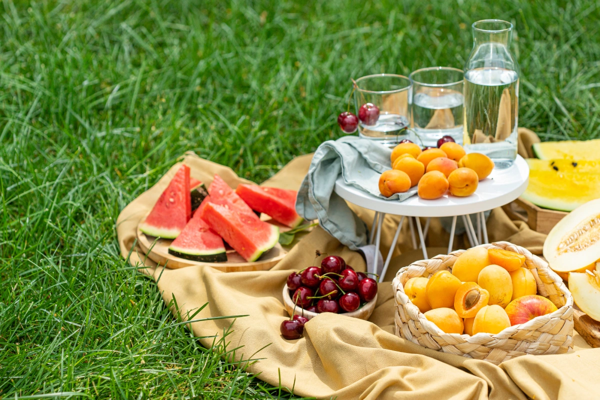- чтобы продукты не испортились на жаре или в дороге, попробуйте заказать их с доставкой и даже с двумя: в первой — основные закуски и горячие блюда, во второй — свежая порция фруктов и овощей, мороженое и десерты. Курьер привезёт всё свежее, в термосумке и вам не надо будет во время праздника переживать о сохранности продуктов или нести на себе дыни и арбузы;