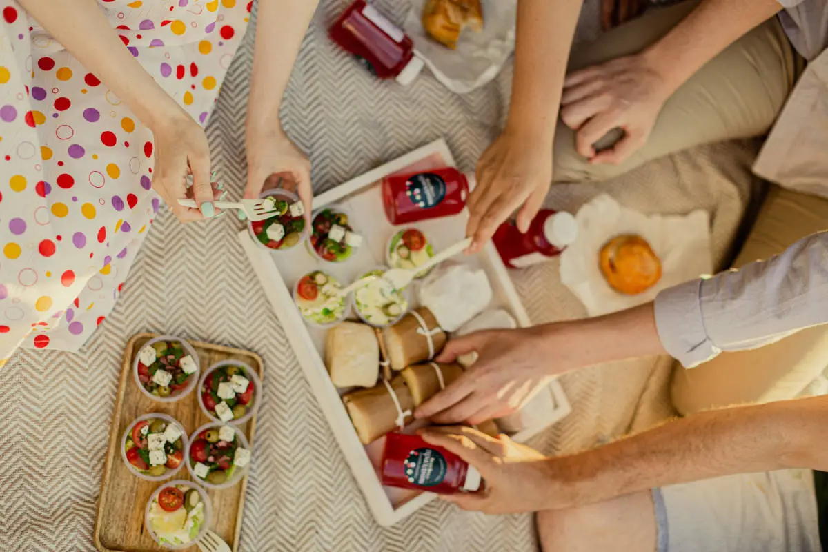 Напомним, что во ВкусВилл Праздник вы можете заказать декор, порционную еду, напитки с доставкой к месту пикника. Вместе с ними мы и устраивали наш пикник для фотосъёмки к статье. И да, если что-то забыли, это тоже можно дозаказать во ВкусВилле. Но всё же основное лучше собрать заранее.