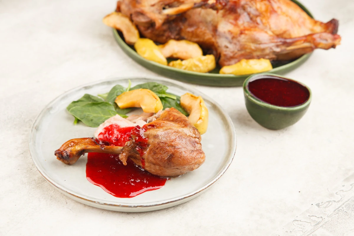 Когда вы узнали все секреты приготовления утки, можно выбирать рецепт, который понравится больше всего. Первым делом расскажем про классическую утку с яблоками, а особый шарм птице добавит соус из протёртой клюквы.