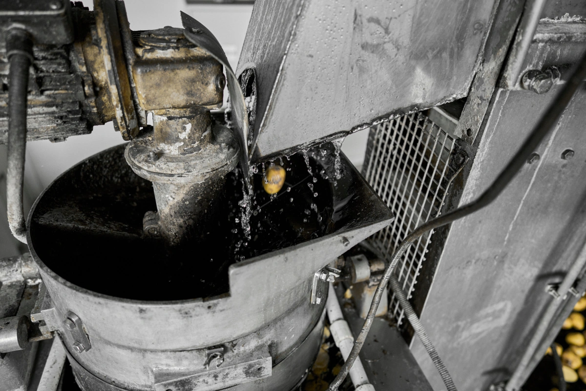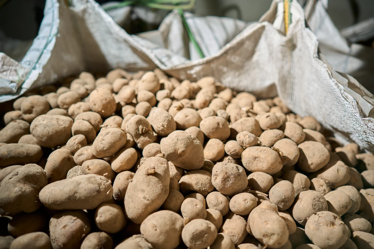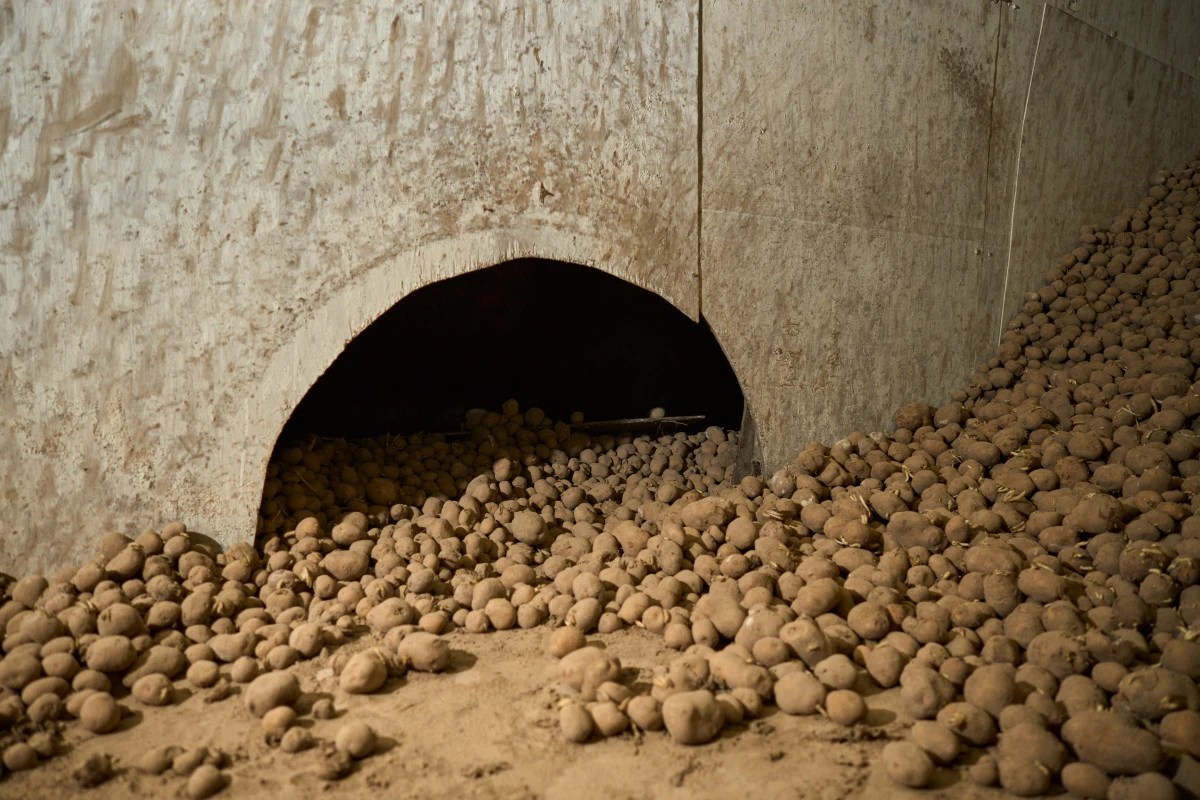 Когда приходит время, картофель выкапывают комбайном и отправляют в хранилище. Оно находится в 10 минутах езды от поля и 5 минутах ходьбы от завода. Это очень большой плюс — картофель доставляют на завод очень быстро и в жару, и в холод, так что при транспортировке у него меньше рисков получить стресс, сказывающийся на качестве.