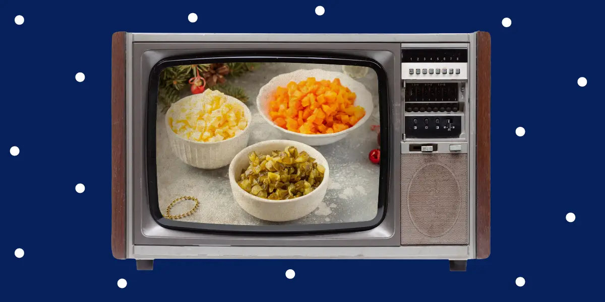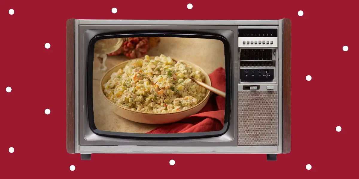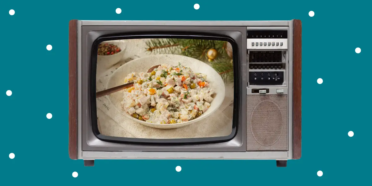 А вы знали, что изначально майонезом называли смесь разных ингредиентов на одной тарелке? Одноименным соусом он стал значительно позже. Вспомнили об истоках любимого салата и пересмотрели главные новогодние фильмы, пока его готовили.
