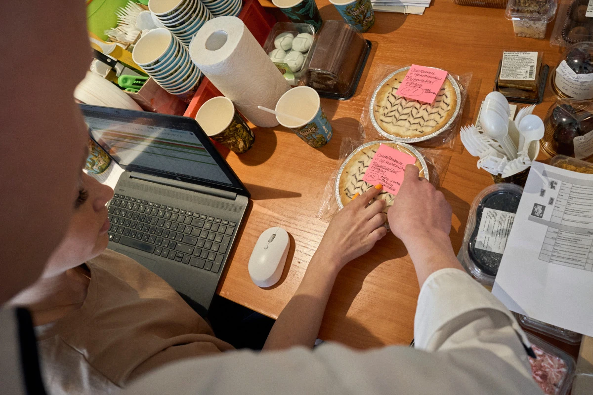 Каждый день большая команда из технологов, бренд-шефа, руководителя отдела и других важных людей пробует новинки и давно любимые покупателями изделия, чтобы проверить их качество. Что-то отправляют на доработку, а чему-то — дают зелёный свет на начало продаж во ВкусВилле.