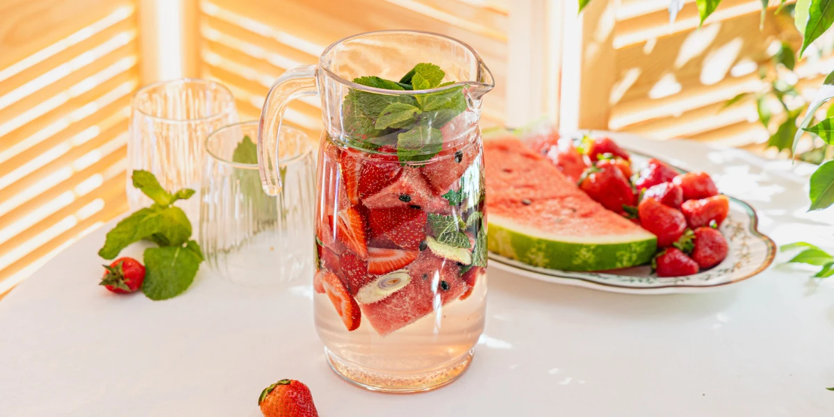 Лимонад с арбузом и клубникой