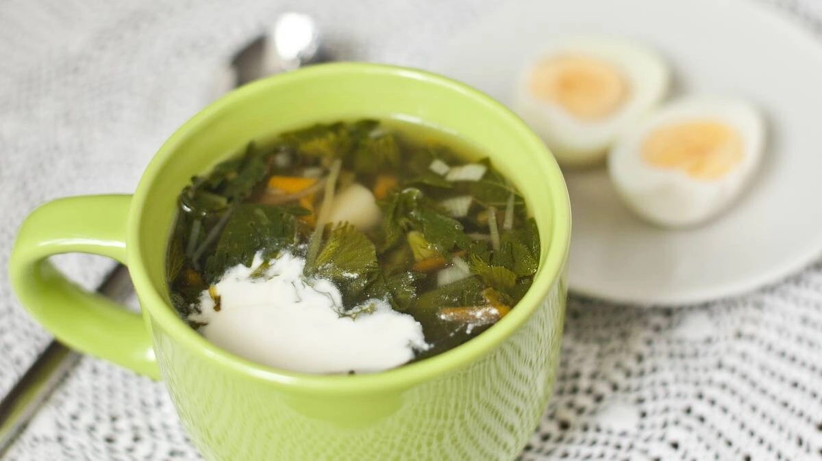 - Помойте щавель и крапиву – вторую в ледяной воде: так она будет немного колоться, зато сохранит больше вкуса и аромата. Нарежьте зелень и добавьте в суп, доведите до кипения и выключите;