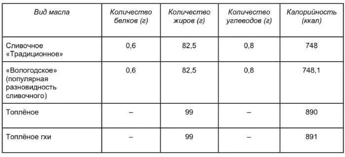 Быстро и наглядно сравнить представленное во ВкусВилле масло — сливочное 82,5 %, «Вологодское», топлёное и гхи — поможет простая таблица. В ней отражено содержание различных пищевых веществ в 100 г каждого продукта.