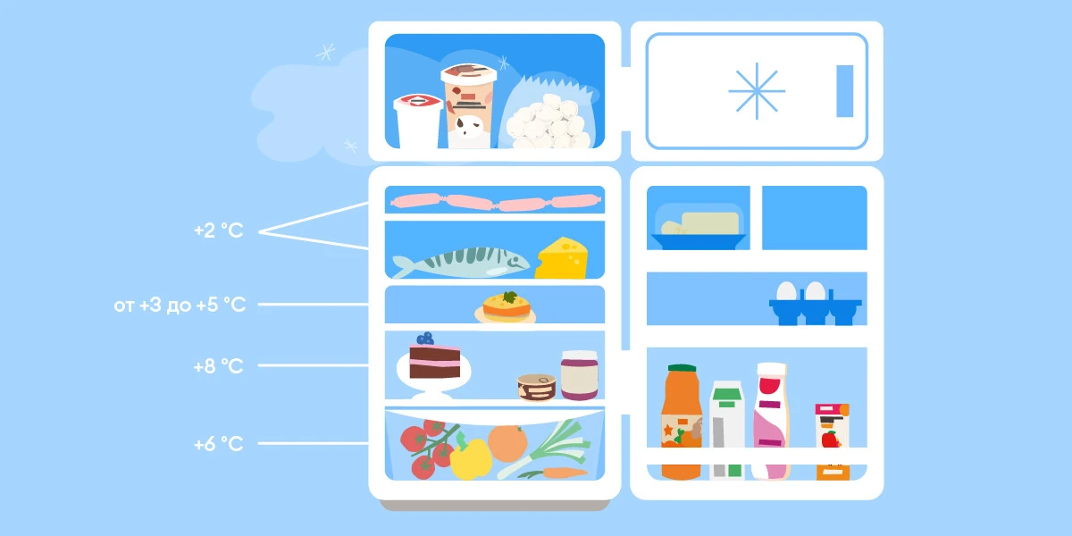 Самая холодная часть холодильной камеры, независимо от того, где находится морозилка — сверху или снизу. Температура там около 2 °C.
