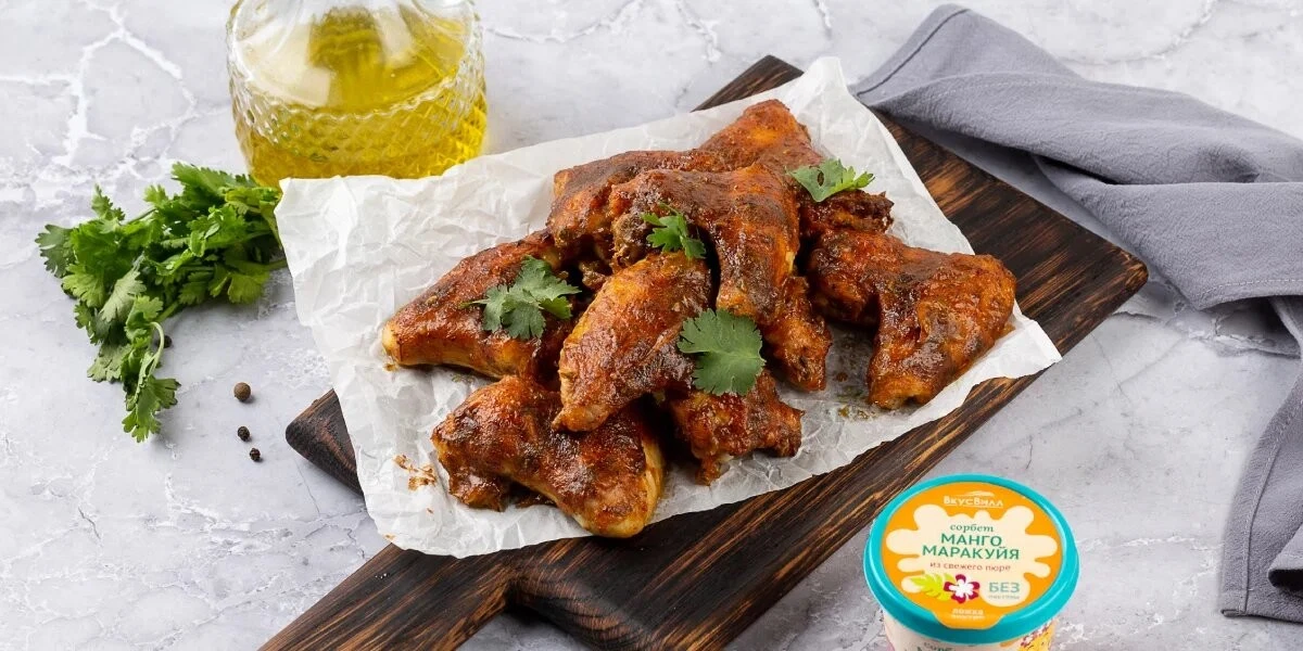 Кого сейчас можно удивить куриными крыльями в медовом маринаде? Ответ очевиден: никого. А вот сорбет в качестве глайзера — это точно что-то новенькое. Крылышки по этому рецепту получились очень вкусными и сочными, мой вердикт: надо готовить!