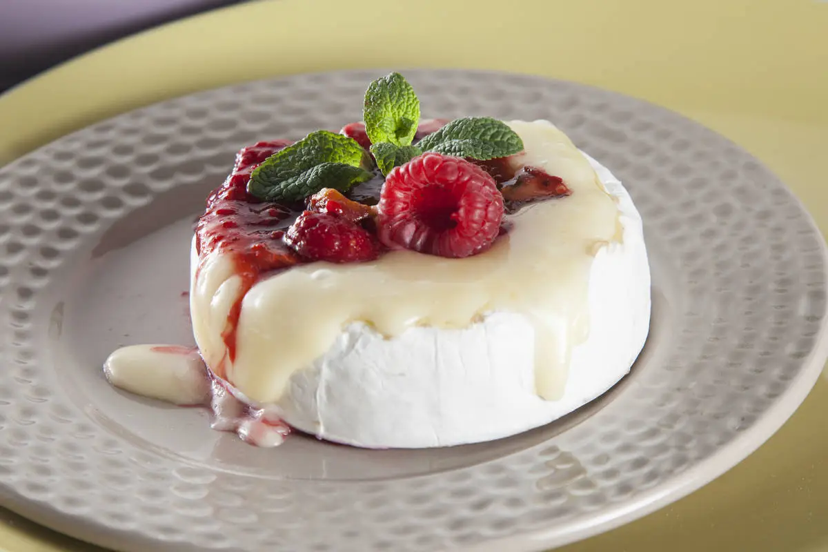 - Для порционной подачи можно разрезать бри пополам вдоль, по половинке на порцию.