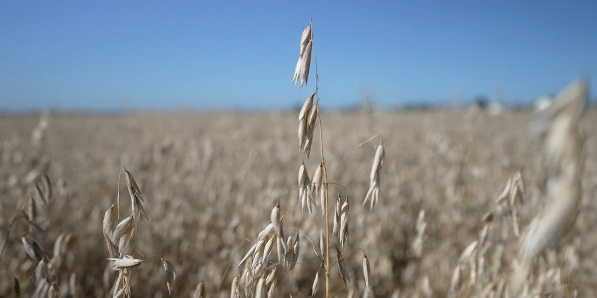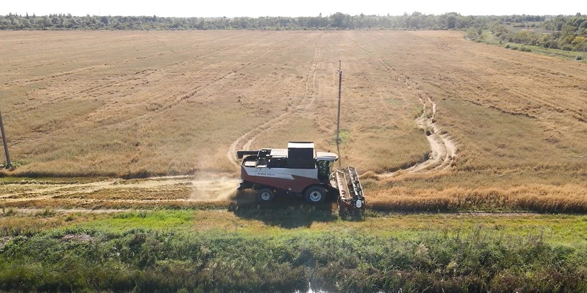 3. Созревший овёс собирают комбайнами, внутри комбайна зерно отделяется от шелухи и соломы.