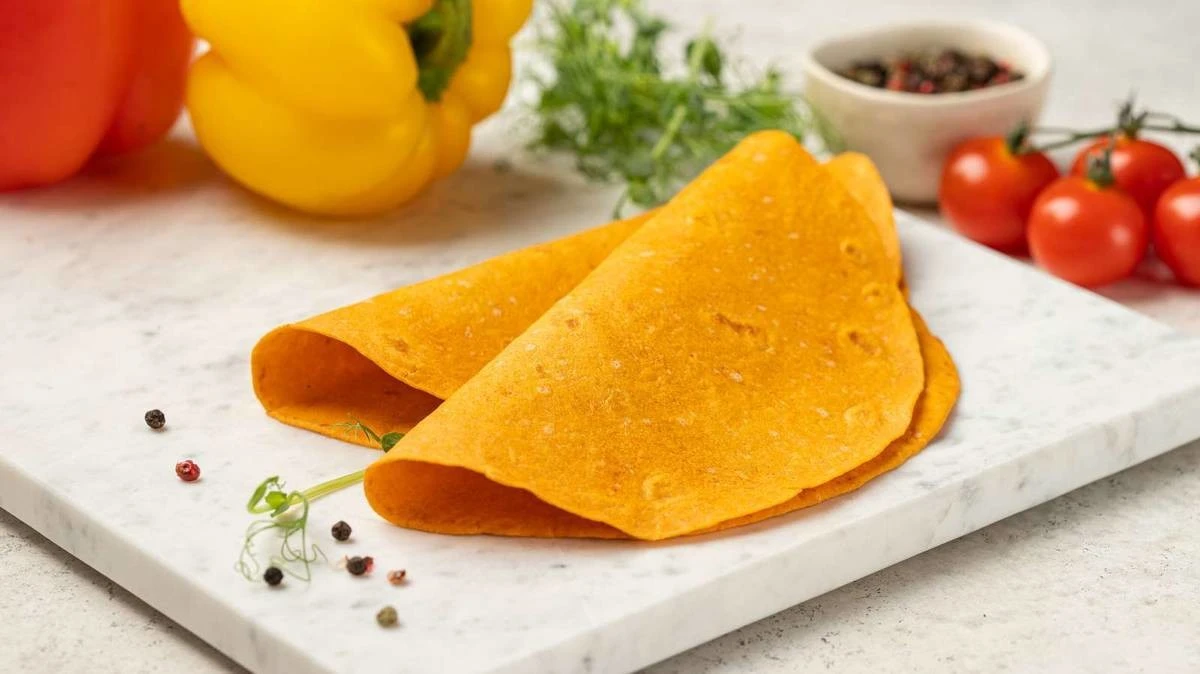 Тортилья с томатом и паприкой от ВкусВилла. Отзыв покупателя: «Небольшая остринка, очень приятная, можно и так есть, и что-то заворачивать»