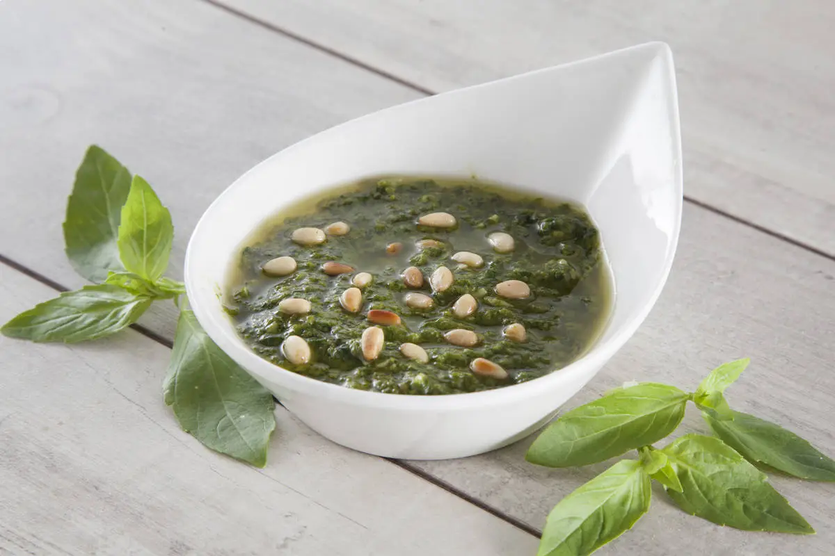 Тот самый лигурийский зелёный соус, покоривший мир, готовился на основе зелёного базилика, сыра и семян пинии с непременным добавлением оливкового масла. Зелень мелко резали и толкли в ступке, смешивая с остальными ингредиентами. Отсюда и название: pestare в переводе с итальянского — «растирать», «давить».