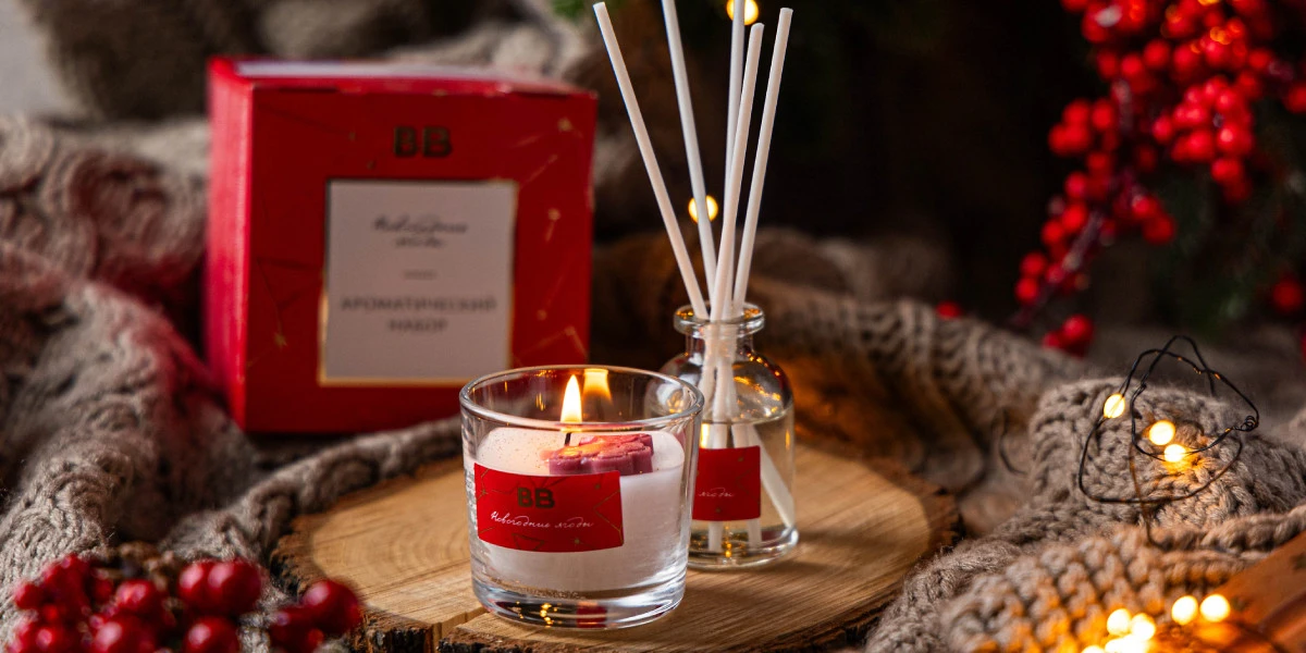 1. Набор ароматический «Новогодние ягоды» свеча с фигуркой + диффузор 30 мл