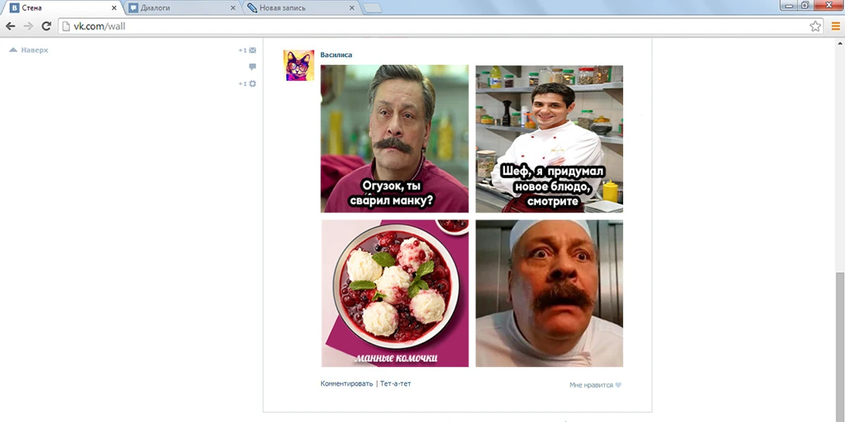 — Десятые подарили нам такие пикчи, как «Повор солит», «Чипсеки», «нееш падумой», «Кот Джаз с блинами», и отдельно выделю мою любимую копипасту про жареный суп (из-за содержания нецензурной лексики сослаться на неё не можем. — Прим. ред.), — вспоминает Глеб Афанасов.