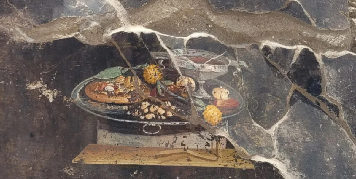 Фреска с изображением лепёшки с топпингами из Помпеев. Источник