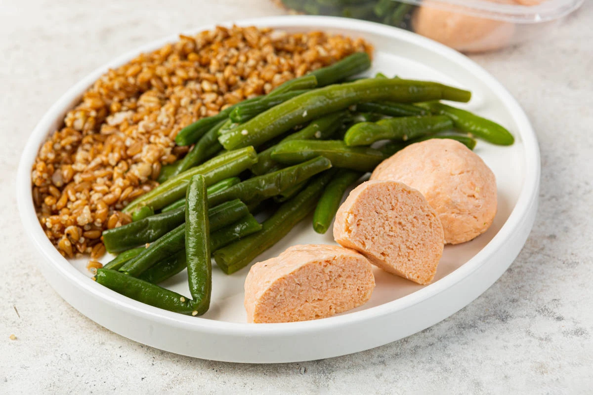 А для первого знакомства можете заказать с бесплатной доставкой готовое блюдо с полбой — биточки из сёмги и кеты с фасолью, полбой и киноа.