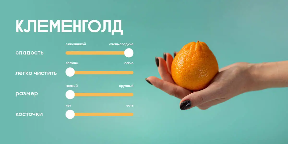 Это разновидность клементина (а клементин, в свою очередь, — гибрид мандарина и карликового апельсина). Клеменголд появился на полках совсем недавно, но уже завоевал любовь покупателей.