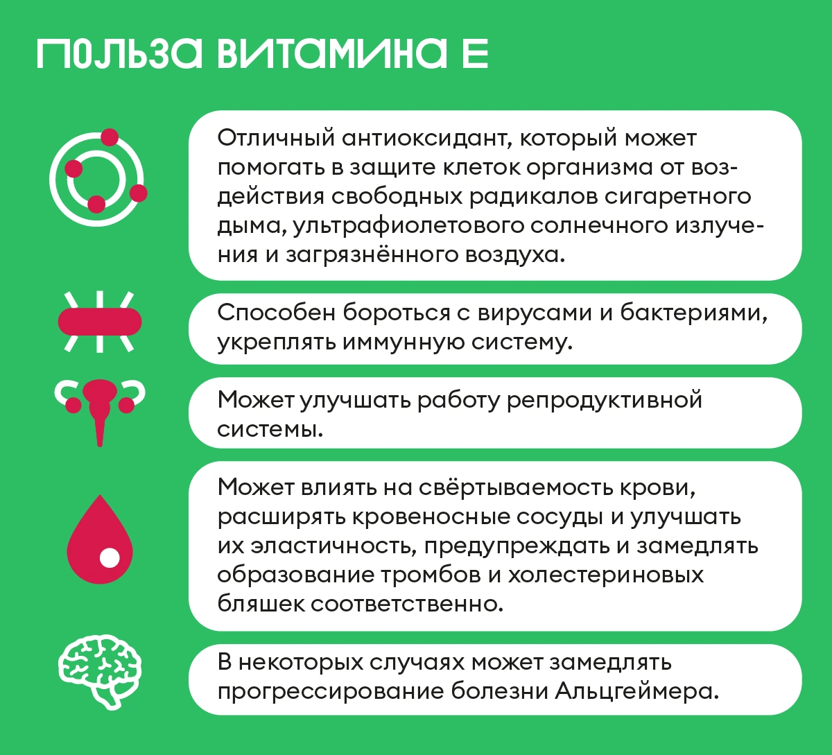 Рассказываем, для чего нам нужен витамин E, в каких продуктах он содержится, а также может ли быть вреден и почему.