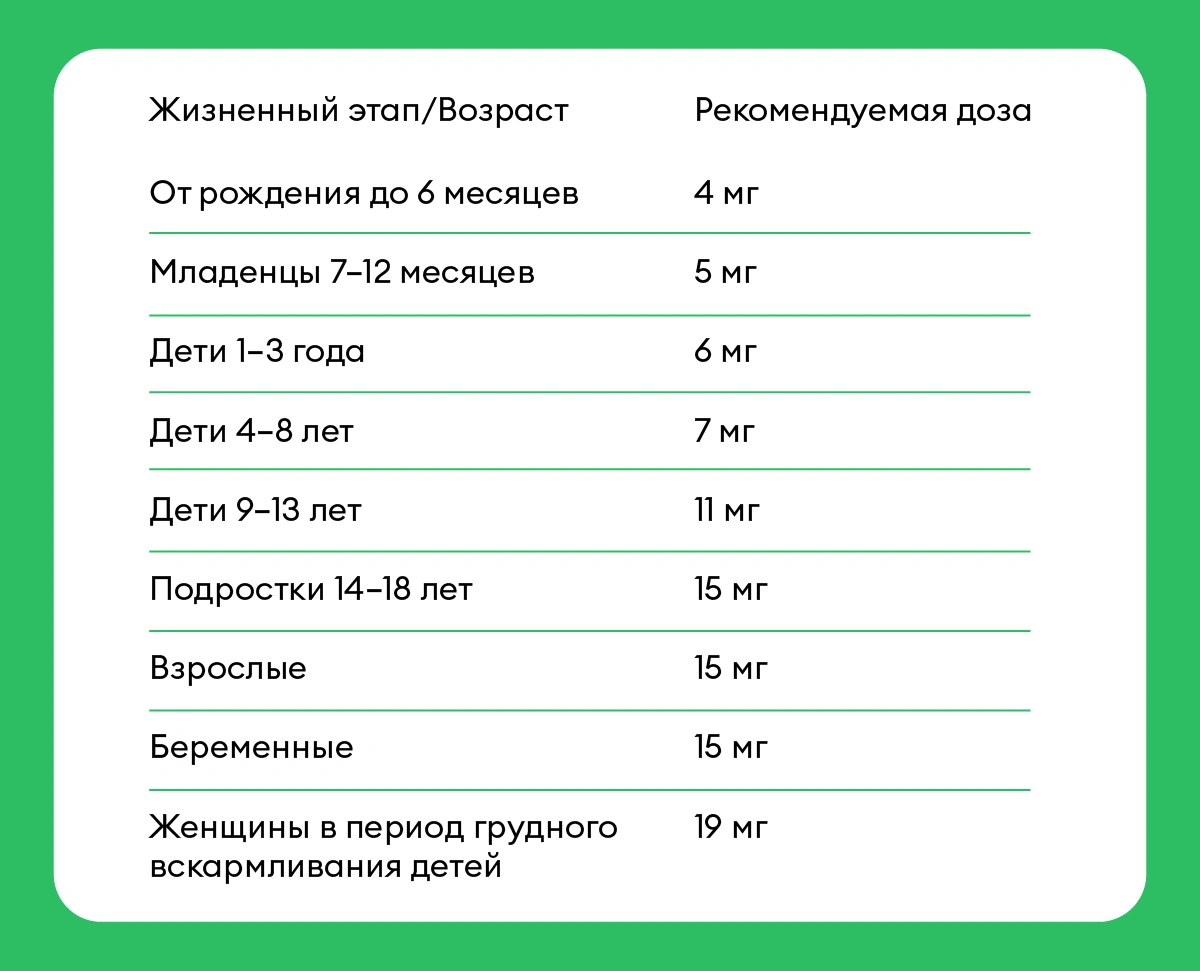 Среднесуточные рекомендации обычно зависят от возраста. Ниже представлена таблица, в которой указано, какому возрасту соответствует та или иная дозировка: