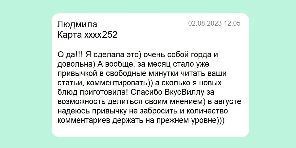 Друзья, наверняка вы замечали на разных страницах ВкусВилл Медиа и в статьях яркую врезку «Активный читатель» — все 3 месяца лета мы выбирали авторов наибольшего числа полезных, содержательных комментариев и дарили по 500 бонусов на карту лояльности.