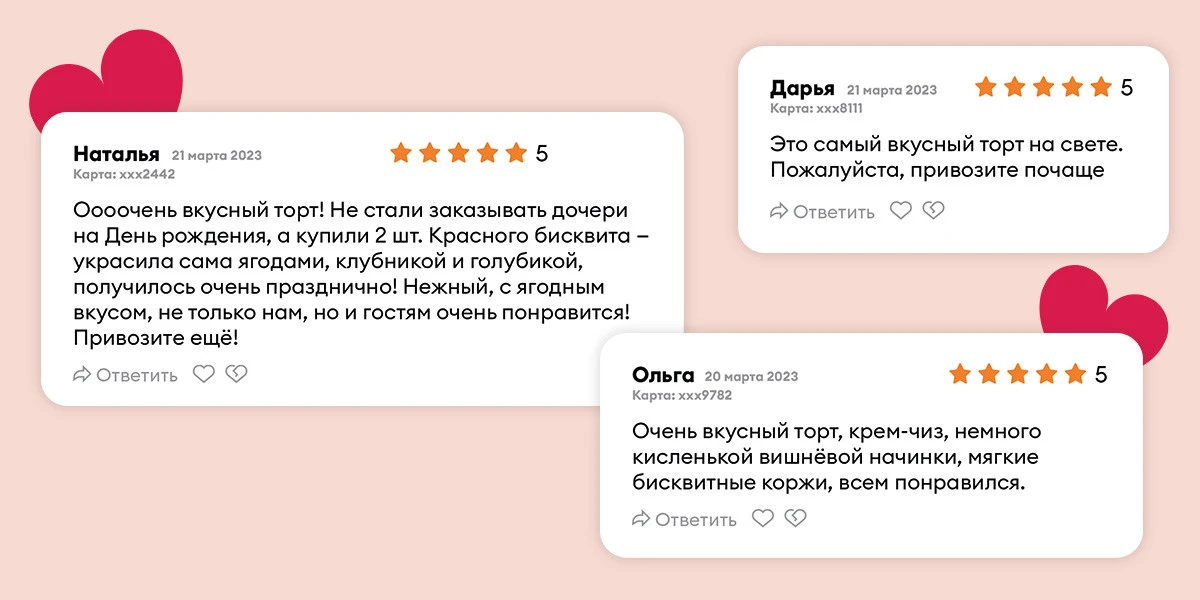 Но бывают случаи, когда торт ко дню рождения находит своего именинника самым неожиданным образом. Нам написал покупатель, семья которого уже больше двух лет всем тортам предпочитает наш — «Маракуйю» из сливочного мусса и фруктового желе на тончайшем бисквите.