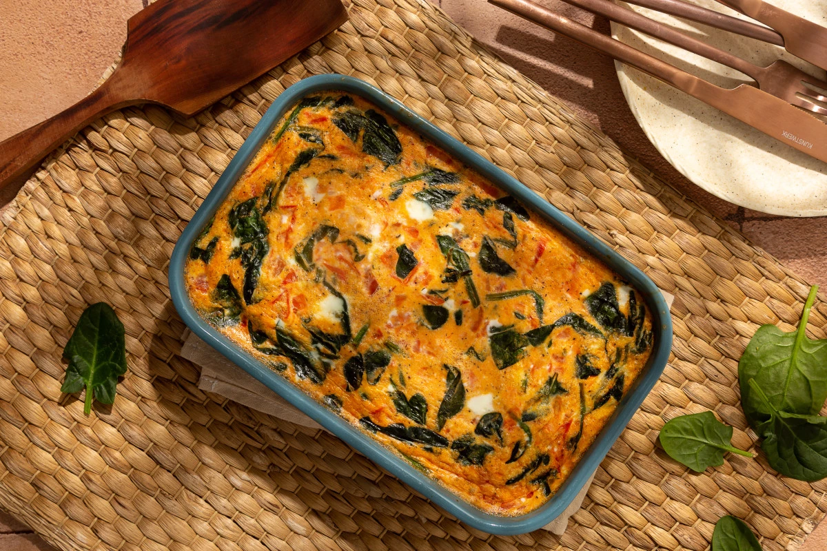 Фриттата с креветками и шпинатом