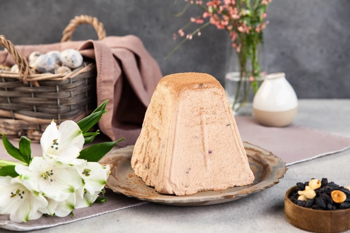Бабушка нашей коллеги из Нижегородской области готовит эту пасху каждый год, а коллега так нахваливает, что мы не удержались и выспросили рецепт. Пасха и правда получается очень вкусной — нежно шоколадная, с изюмом и орешками.