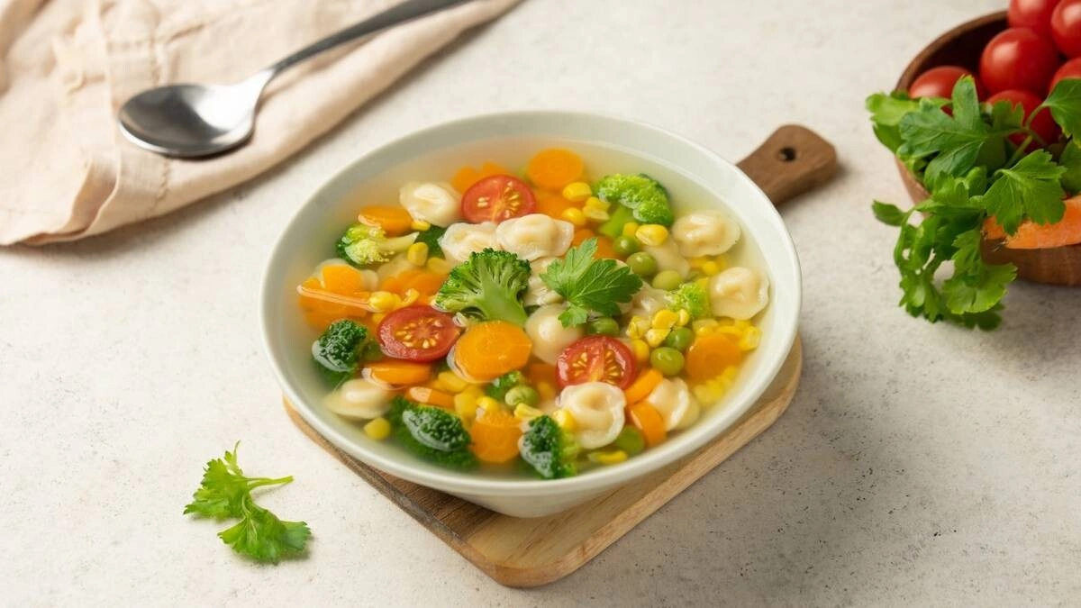 Детский суп с пельменями микро