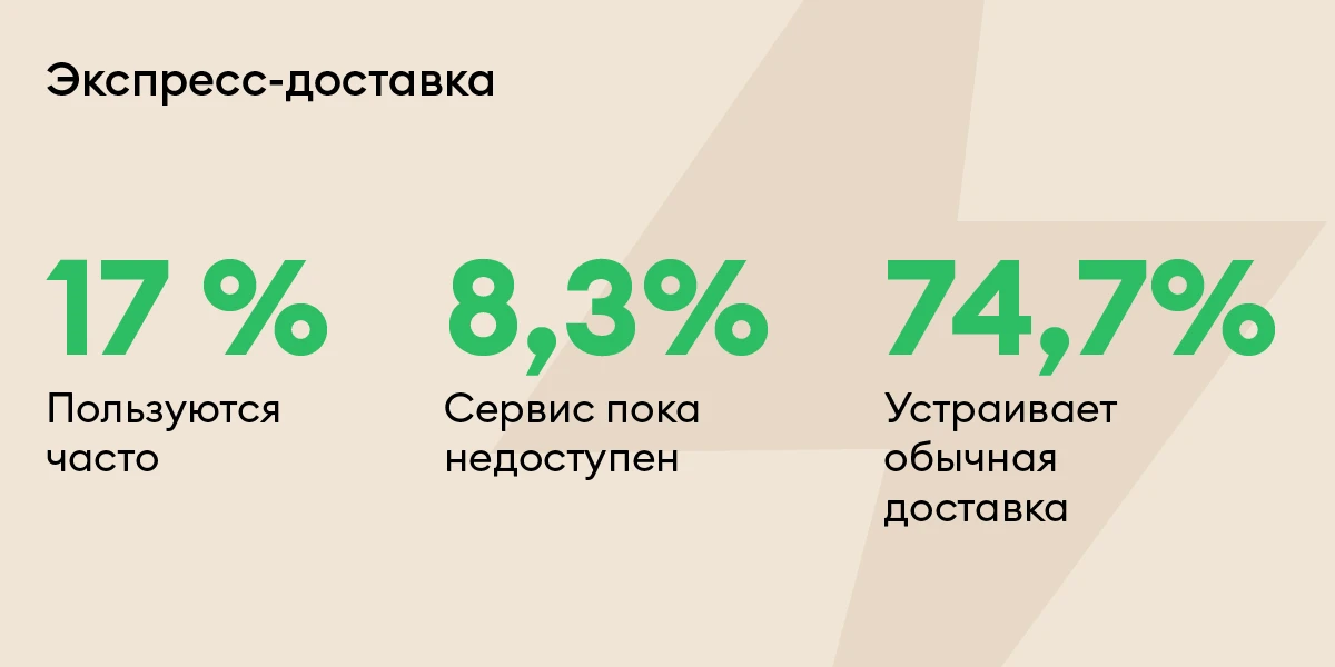 Часто пользуются ускоренной доставкой 17 % опрошенных покупателей* и делают это, как правило, в случае разномасштабных форс-мажоров: