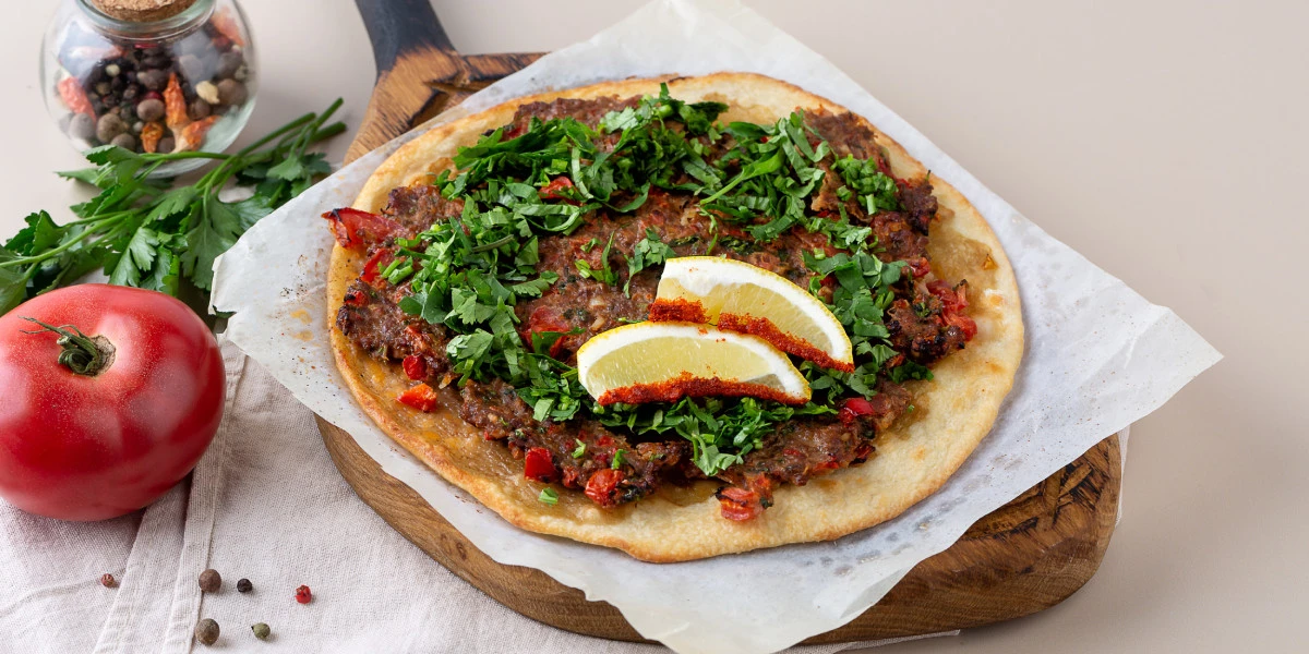 Ламаджо, или лахмаджун, — это что-то вроде восточной пиццы, только без сыра. Отлично подойдёт в качестве закуски, перекуса или на обед к овощному супу или бульону.
