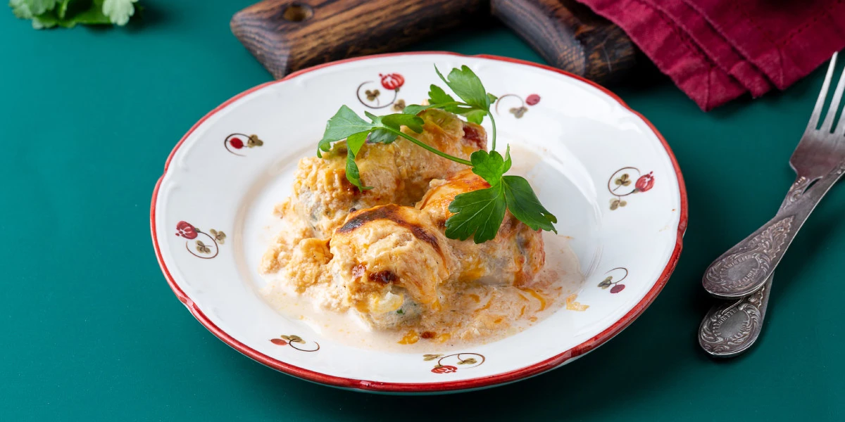 Похожи на котлетки с соусом или тефтельки и наверняка понравятся школьникам. Соус от нашего бренд-шефа Артёма Калитвинцева получается очень насыщенным по вкусу, и сами колобки из куриного фарша отлично им пропитываются.