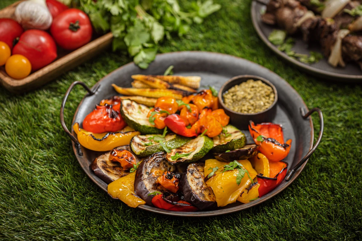 Одним мясом на мангале сыт будешь, но с овощами на гриле и тем более салатом из них — куда вкуснее.