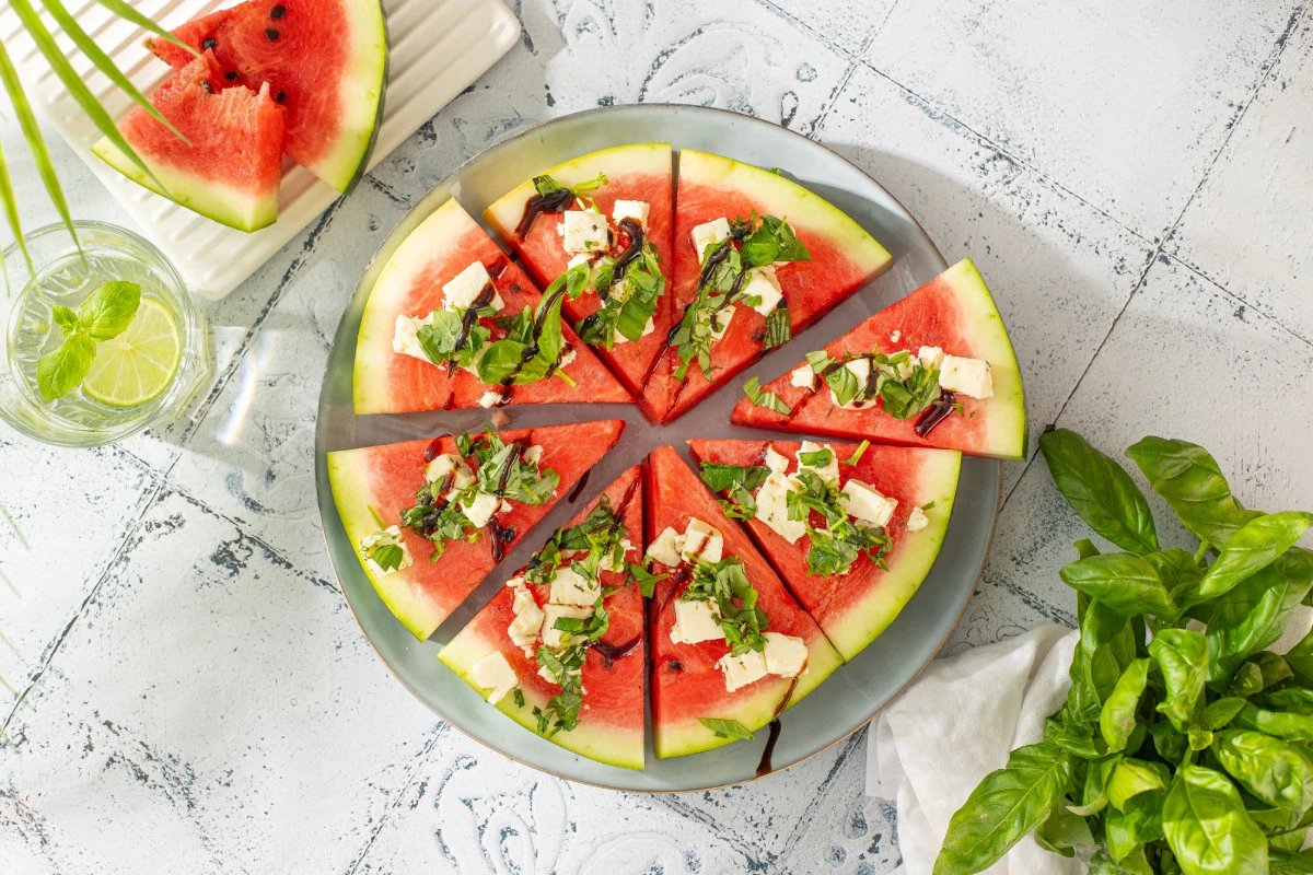 Арбузный суп, пицца, яркие закуски и десерты — подборка пошаговых рецептов к арбузному сезону.