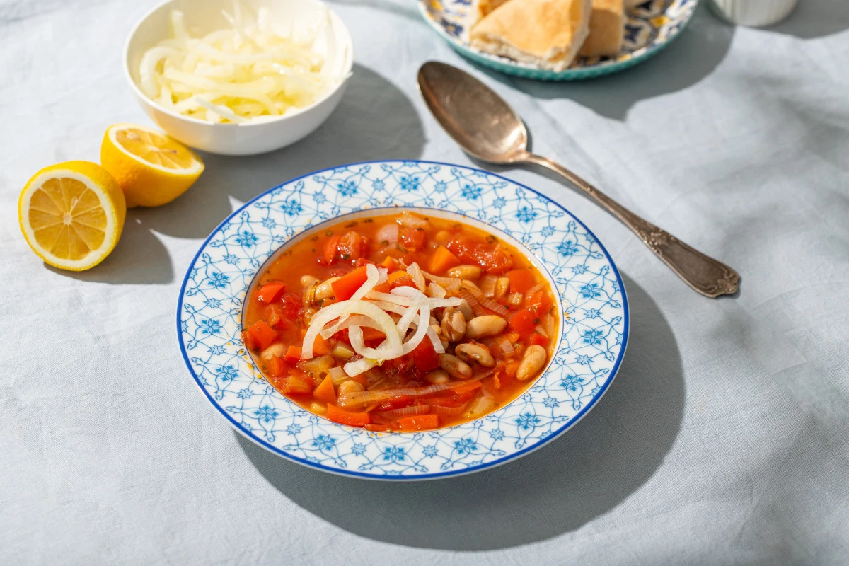Фасолада — это густой, наваристый фасолевый суп, который очень популярен в Греции. В нём нет продуктов животного происхождения, поэтому подходит и для веганов. Традиционно суп готовится из сухой фасоли, но мы взяли консервированную, чтобы ускорить процесс.
