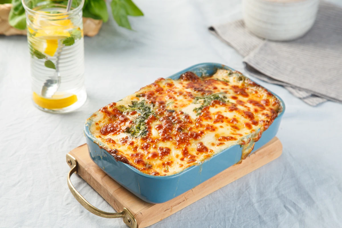 - В глубокую форму для запекания выложите немного соуса бешамель, затем слоями картошку, фарш, овощную зажарку, баклажаны. Повторите слои, залейте оставшимся соусом, выложите сверху кружочки моцареллы и рубленую петрушку. Запекайте в разогретой до 180 °С духовке 15–20 минут до золотистой корочки.