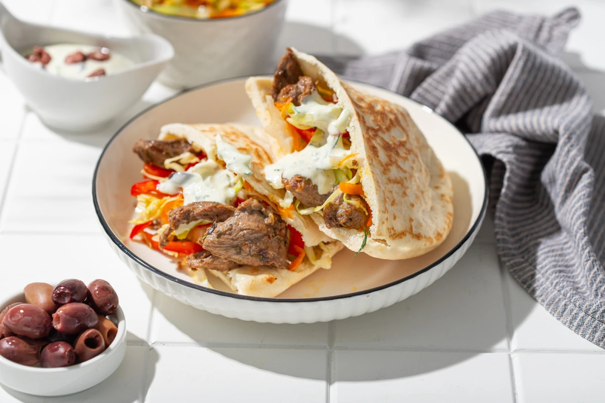Греческие сувлаки — это небольшие шашлыки, замаринованные в смеси масла, лимонного сока и специй. Их подают как на шпажках, так и в пите (тогда получается практически бутерброд). Мы предлагаем приготовить как раз второй вариант — сувлаки в пите.