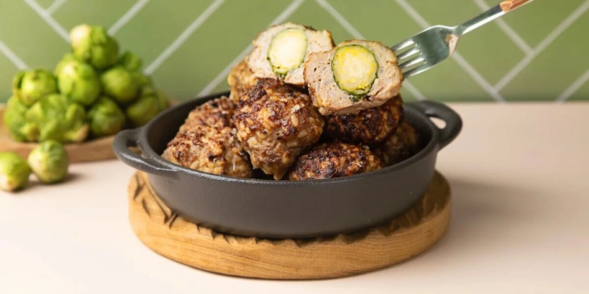 - Мокрыми руками сформируйте котлетки, вложив в центр каждой по одной брюссельской капустке.