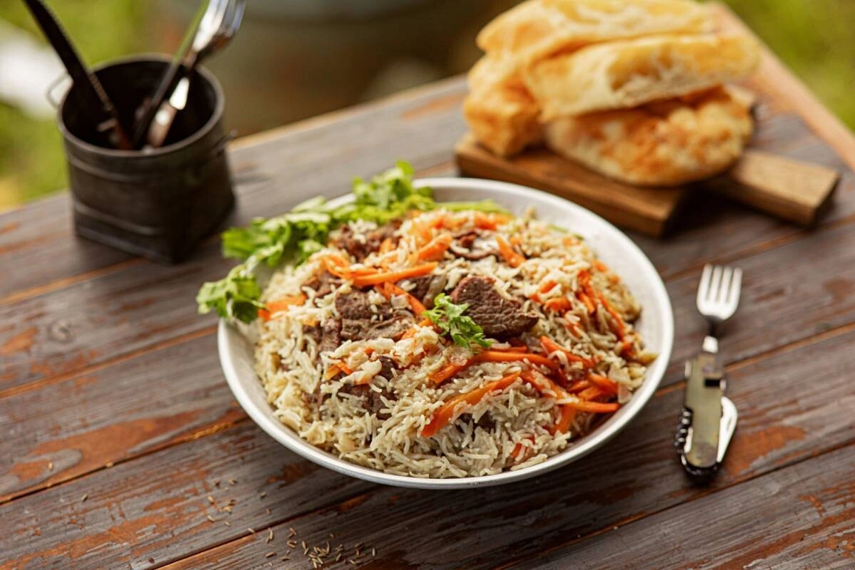 Традиционное блюдо в казане, но рецепт этого плова немного не похож на «домашний вариант» для плиты. Однако по такой технологии плов на костре получается на пять с плюсом, попробуйте — и вы сами в этом убедитесь.