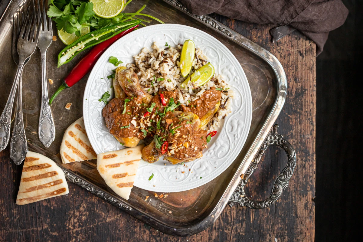 Сочное мясо птицы в пикантном соусе из лука, помидоров, пряностей и шоколада никого не оставят равнодушным.