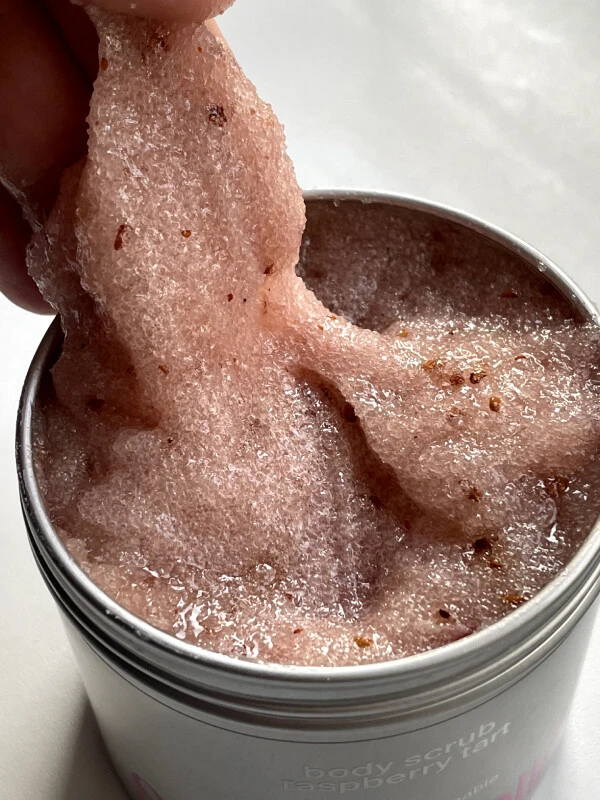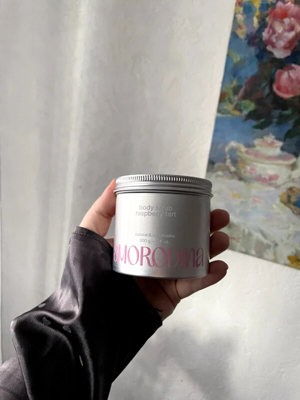 Даже звучит вкусно — малиновый тарт. Пахнет, как малиновая карамелька. Тягучий, как жидкий мармелад. В основе сахар и морская соль, отшелушивает щадяще, я бы назвала этот скраб мягким. Стильная банка, которую приятно видеть на полке, а потом можно повторно использовать или сдать в переработку. На коже остаётся яркой малиной. Что очень понравилось — не оставляет на теле масляную плёнку, но ощущение увлажнённой кожи всё равно есть.