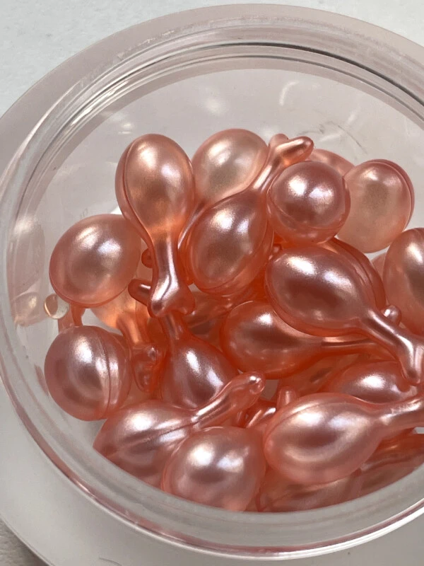 Небольшая розовая баночка, внутри капсулки, похожие на розовых жемчужных рыбок. Хвостик лучше срезать ножницами, руками разделаться не вышло. Текстура сыворотки оказалась маслянистой, на что, в общем-то, тонко намекало упоминание макадамии в названии. Подумалось, что она классно подойдёт для ручного массажа лица. На удивление, сыворотка быстро впиталась, не оставила жирного блеска, плёнки, только бархатистую кожу. Заявлен осветляющий эффект и борьба с пигментными пятнами, за неделю использования подобного не заметила, но я не расстроена, свои веснушки люблю.