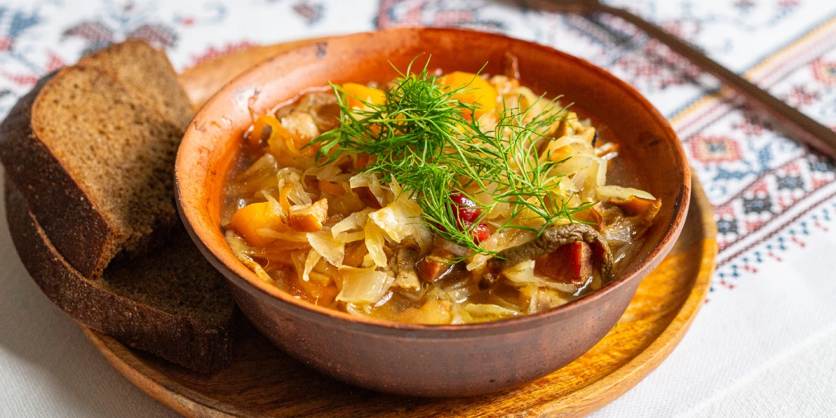 Конечно же, раньше щи традиционно готовили в русской печи, поэтому аутентичность соблюсти на все 100 % не удастся. И тем не менее: мы включили духовку, все ингредиенты поместили в горшочки — и получилось очень хорошо! А капусту, кстати, взяли двух видов: и свежую, и квашеную.