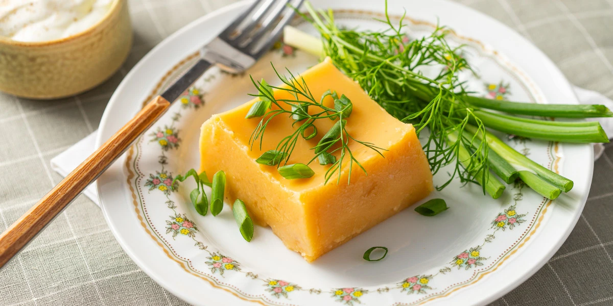 4. Выложите получившуюся массу в форму и остудите. Разрежьте на кусочки желаемого размера и подавайте с маслом, сметаной, бульоном или просто со свежей зеленью.