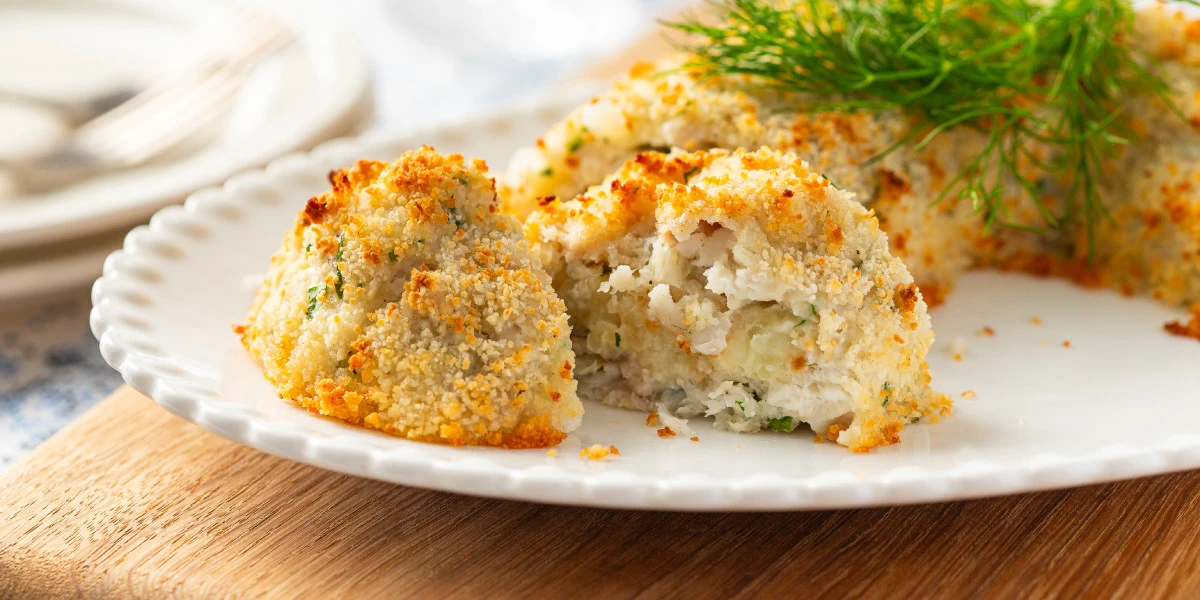 6. Присыпьте панировочными сухарями и запекайте в разогретой до 200 ℃ духовке 15 минут. Тельное из судака готово!