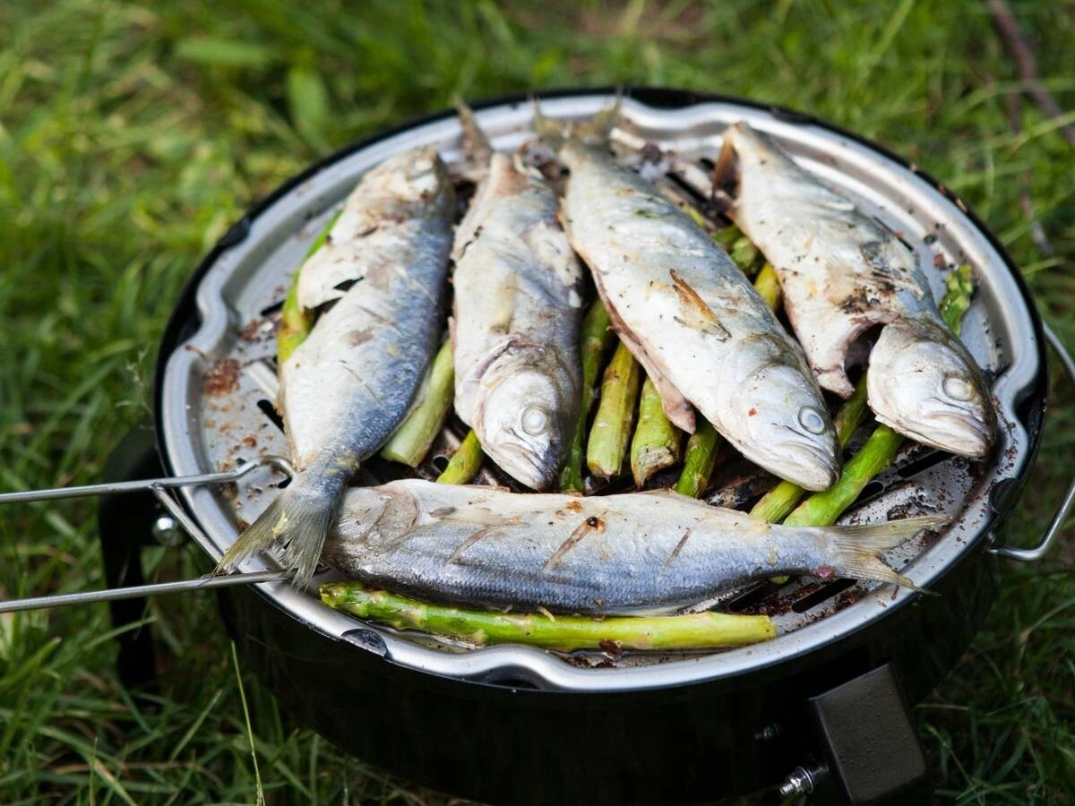 Рыба на решётке, шампурах и шпажках