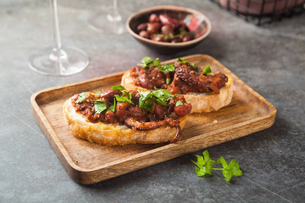 - Восхитительно ароматное рагу можно подавать в качестве соуса к пасте, отлично сочетается со спагетти. Или поджарьте ломтики чиабатты/багета и выложите рагу на них, посыпьте рубленой петрушкой – получатся итальянские брускетты. Идеальная закуска!